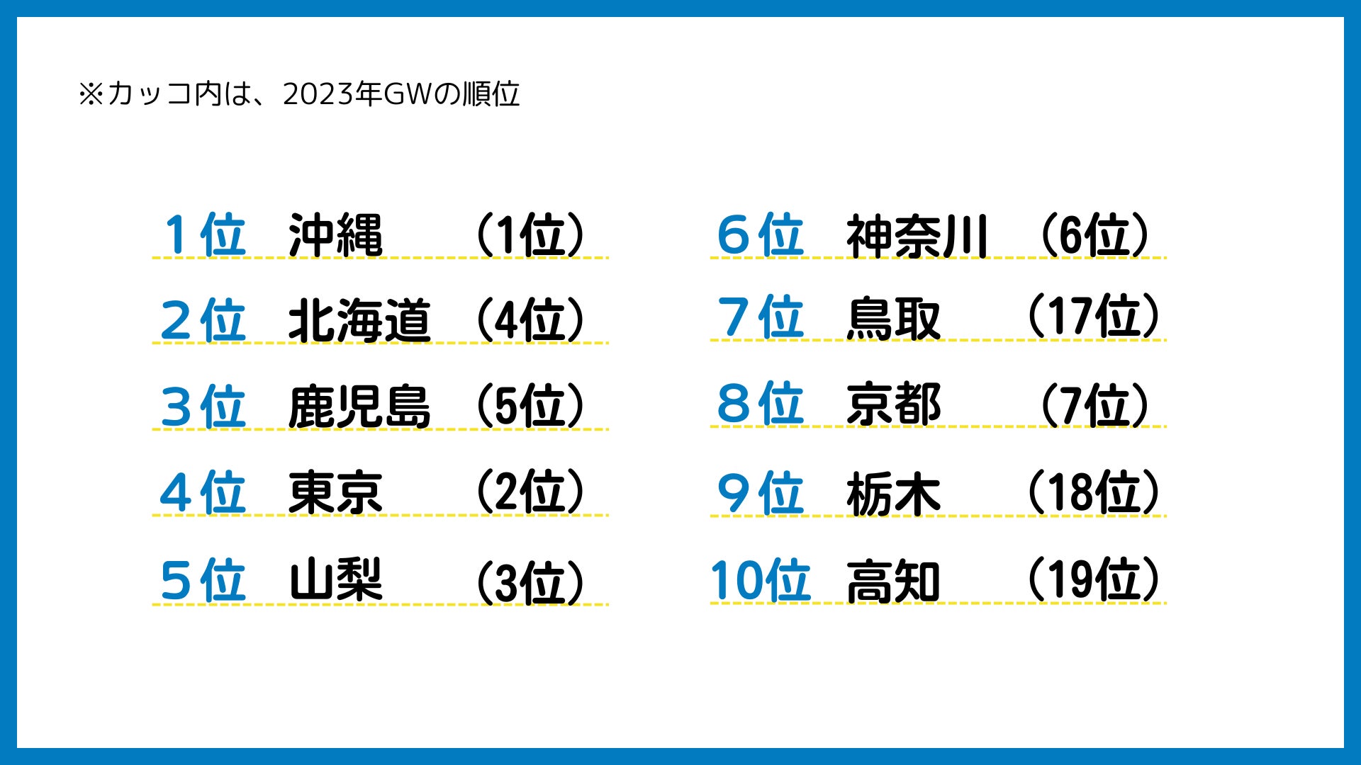 2024年アクティビティジャパンGW人気都道府県ランキング
