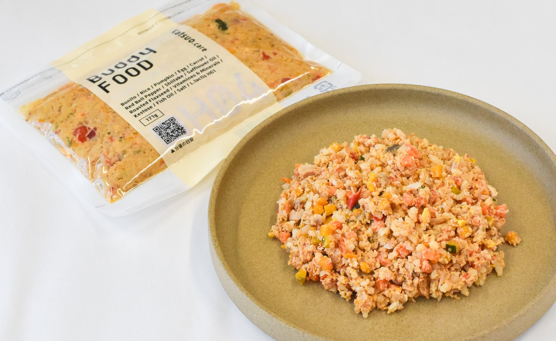 パーソナライズドヘルスケア・ソリューションの第一弾として、全ての愛犬に「ほんとうに安心できるごはん」をお届けするため、九州産食材を使い、調理したてを冷凍してご自宅にお届けする国産の愛犬ごはん「Buddy FOOD(バディフード)」を開始。栄養学を専門とする獣医師と共同開発し、新鮮な素材を使い、過度の加工をせず調理されているため、素材本来の香 り・旨味が強いことが特徴です。食材の種類・仕入れ先・産地や、製造委託先など、原則全てをウェブサイトで公開しており、その高い信頼性から、全国1,000以上の動物病院と提携し、多くの獣医師さんからおすすめいただいております。