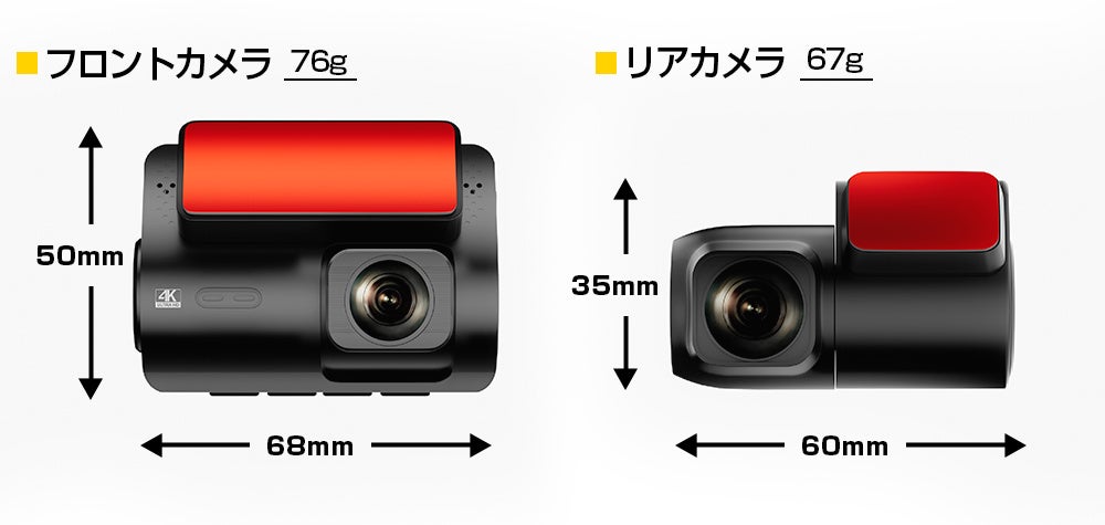 画素数は、フロントカメラが約800万画素と、3840×2160P 4K高画質に撮影することができます(リアカメラは約500万画素)。ナンバーや標識などもしっかり記録することができます。