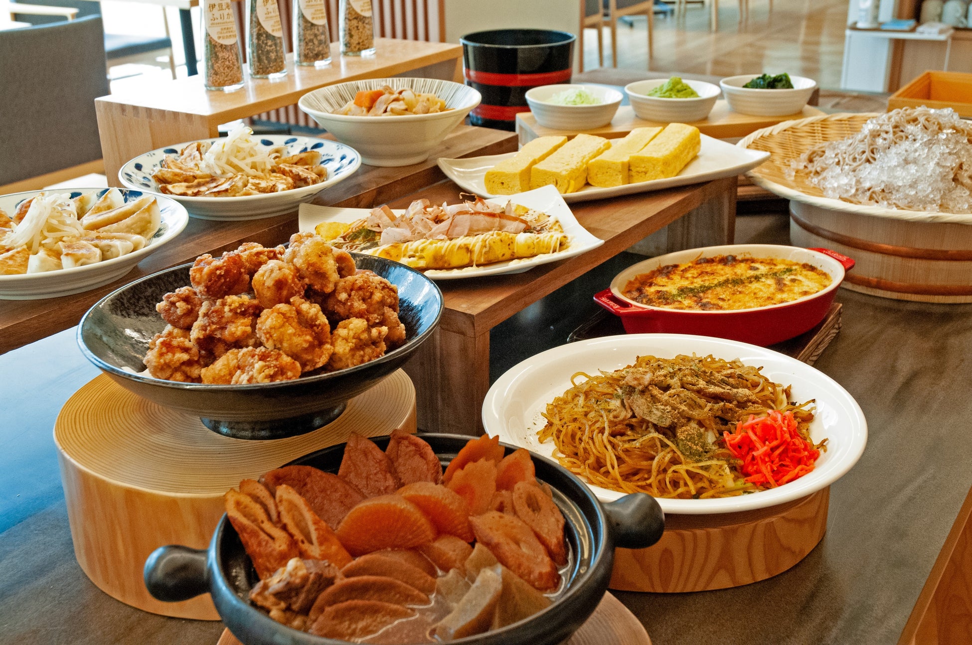 その他、ビュッフェカウンターには和洋中のメニュー約40種類を常時ラインナップ。静岡のB級グルメとして有名な『静岡おでん(しぞーかおでん)』や『富士宮やきそば』をはじめ、コクと甘みが強く臭みの少ない静岡産の鶏肉・美味鳥(びみどり)を使った『美味鳥唐揚げ』など、様々な静岡のご当地グルメもお楽しみいただけます。バラエティー豊富なビュッフェ料理の品々を心ゆくまでご堪能くださいませ。