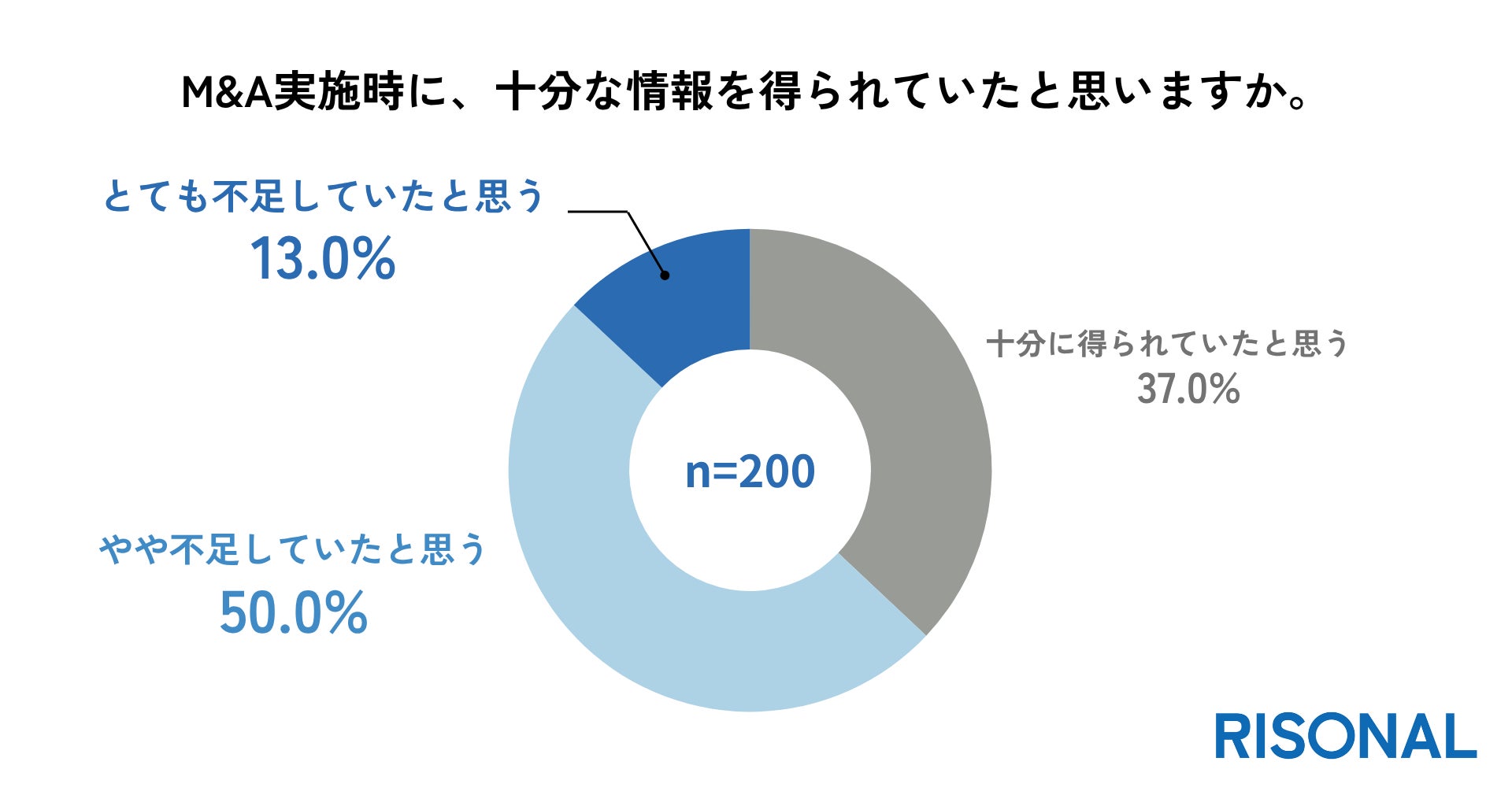 ・M&A実施時に十分な情報が得られたと感じた人は4割未満にとどまる