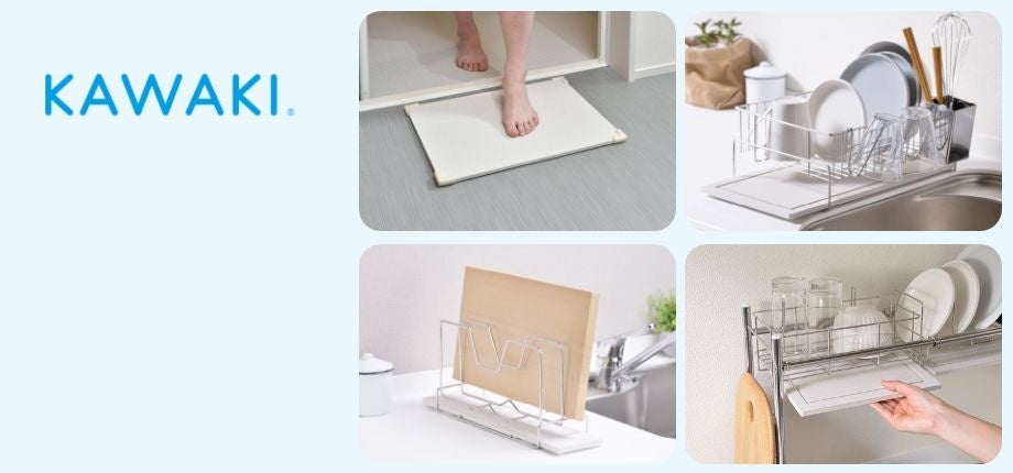 金属加工の産地で知られる新潟県・燕三条の丁寧なものづくりと、水を吸収し空気中に放出するモイスを組み合わせ誕生したシリーズ「KAWAKI / カワキ」。