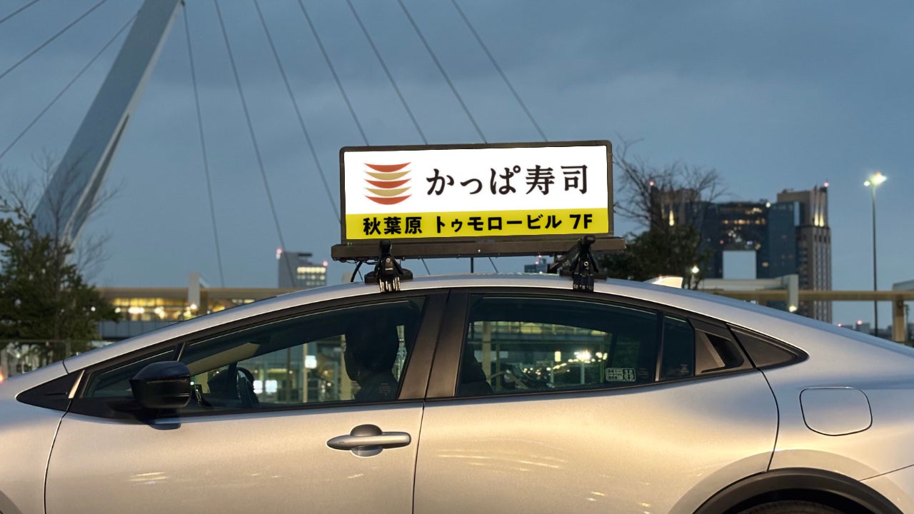 モビリティ広告プラットフォーム『WithDrive』を運営する株式会社Essen(本社:神奈川県川崎市、代表取締役:橘 健吾)は、カッパ・クリエイト株式会社(本社:神奈川県横浜市、代表取締役社長:山角 豪)が運営する人気回転寿司ブランド「かっぱ寿司」と共同で、日本初(※)となる乗用車を活用したデジタルサイネージ広告の実証実験を2025年10月1日より期間限定で実施することをお知らせします。