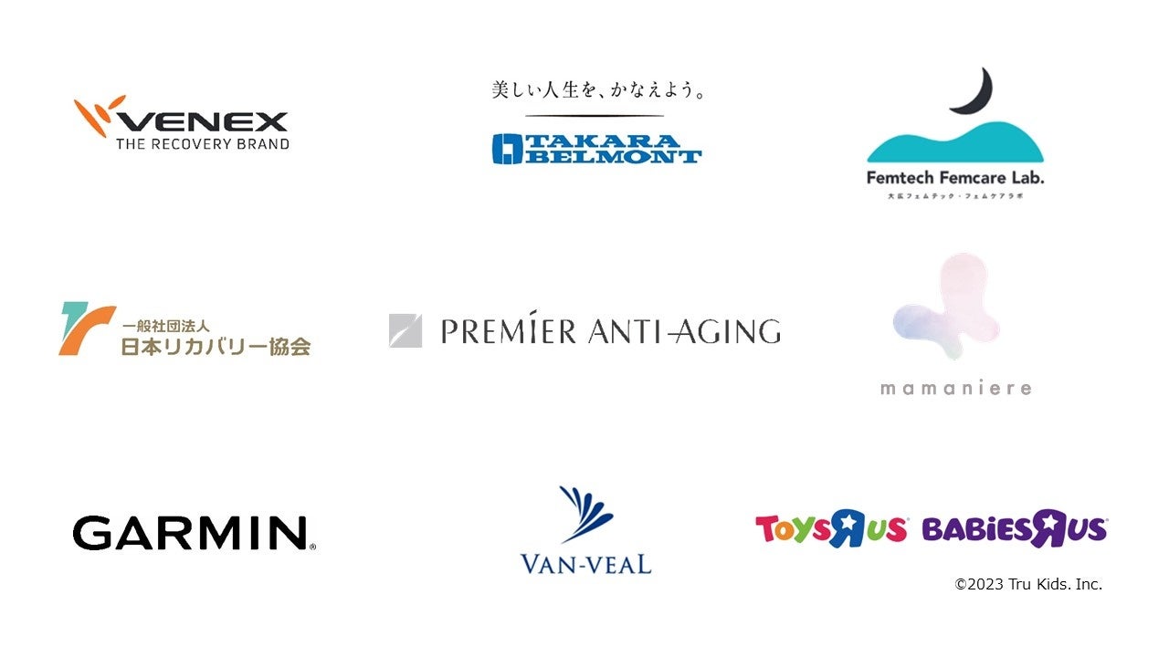 株式会社ベネクス/タカラベルモント株式会社/株式会社大広(大広フェムテック・フェムケアラボ)/一般社団法人日本リカバリー協会/プレミアアンチエイジング株式会社/株式会社ポーラ/ガーミンジャパン株式会社/株式会社ビ・メーク/日本トイザらス株式会社(順不同)