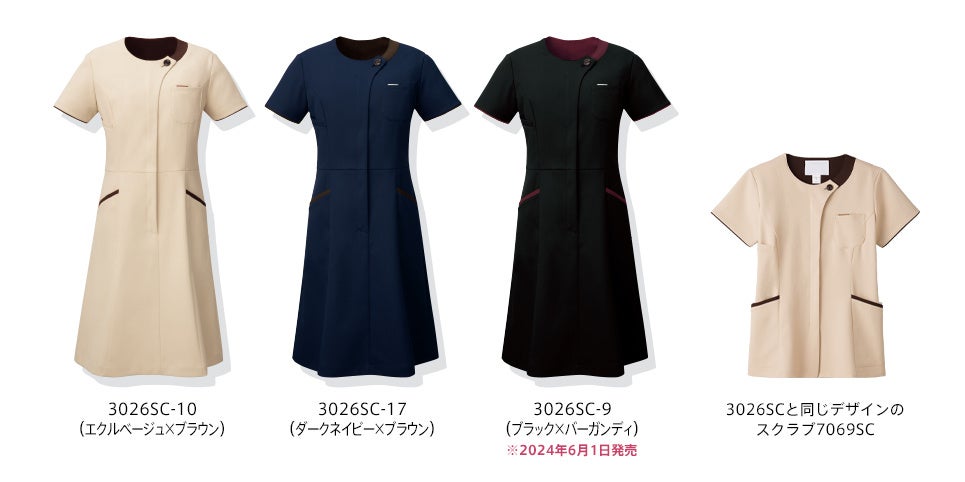 また、医療施設・美容クリニック受付など接客を伴う職種において、ワンピースの採用が増えていることを受け、メディカルウェア事業を展開する自社の強みを活かしたメディカルウェア素材のワンピースを豊富に取り揃えました。