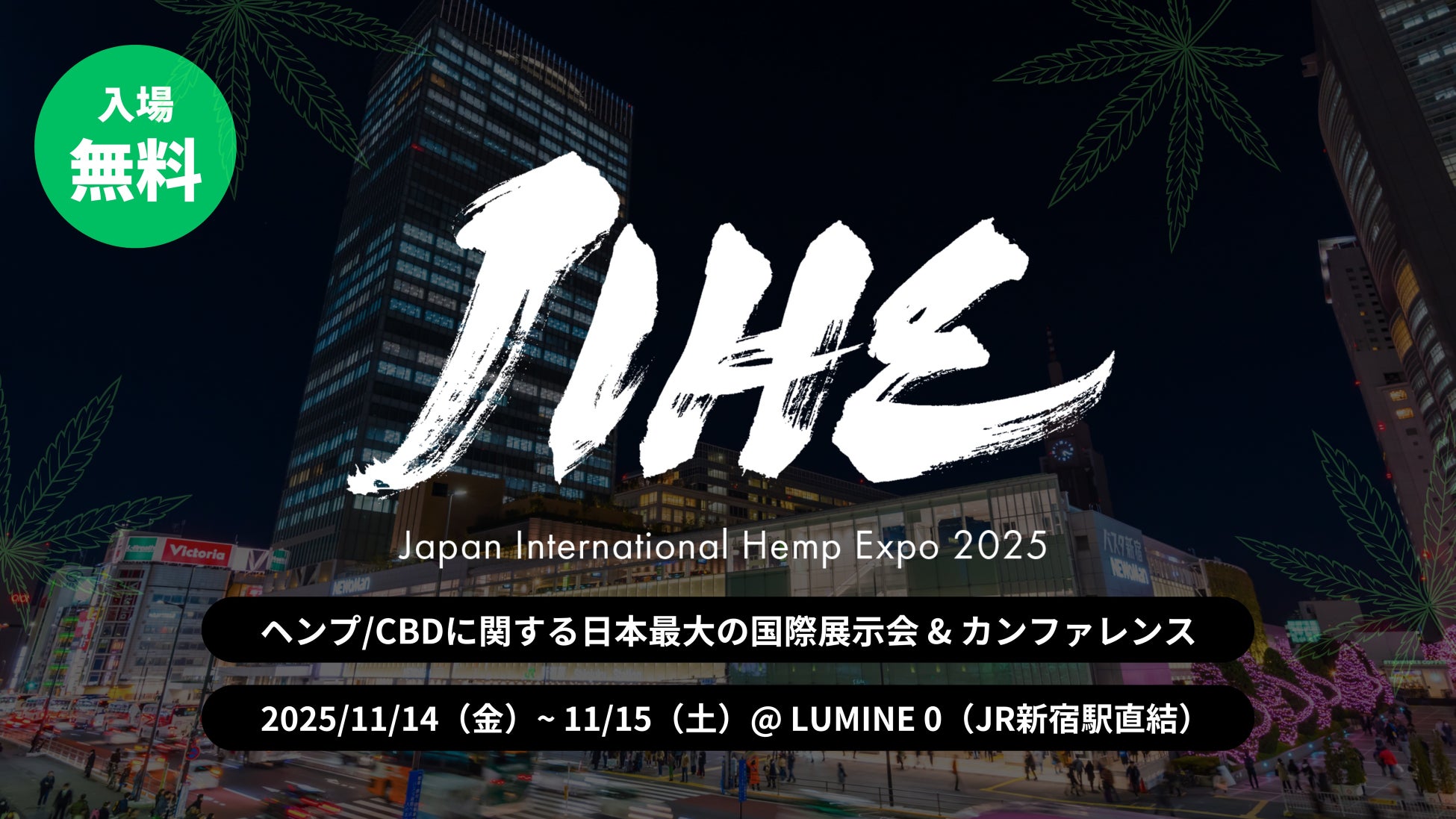 法改正を経て、日本最大級のCBD・ヘンプの祭典が新たな幕開け。11月14日~15日「国際ヘンプ博覧会: JIHE(ジャイヘ)2025」が新宿駅直結の会場にて開催。