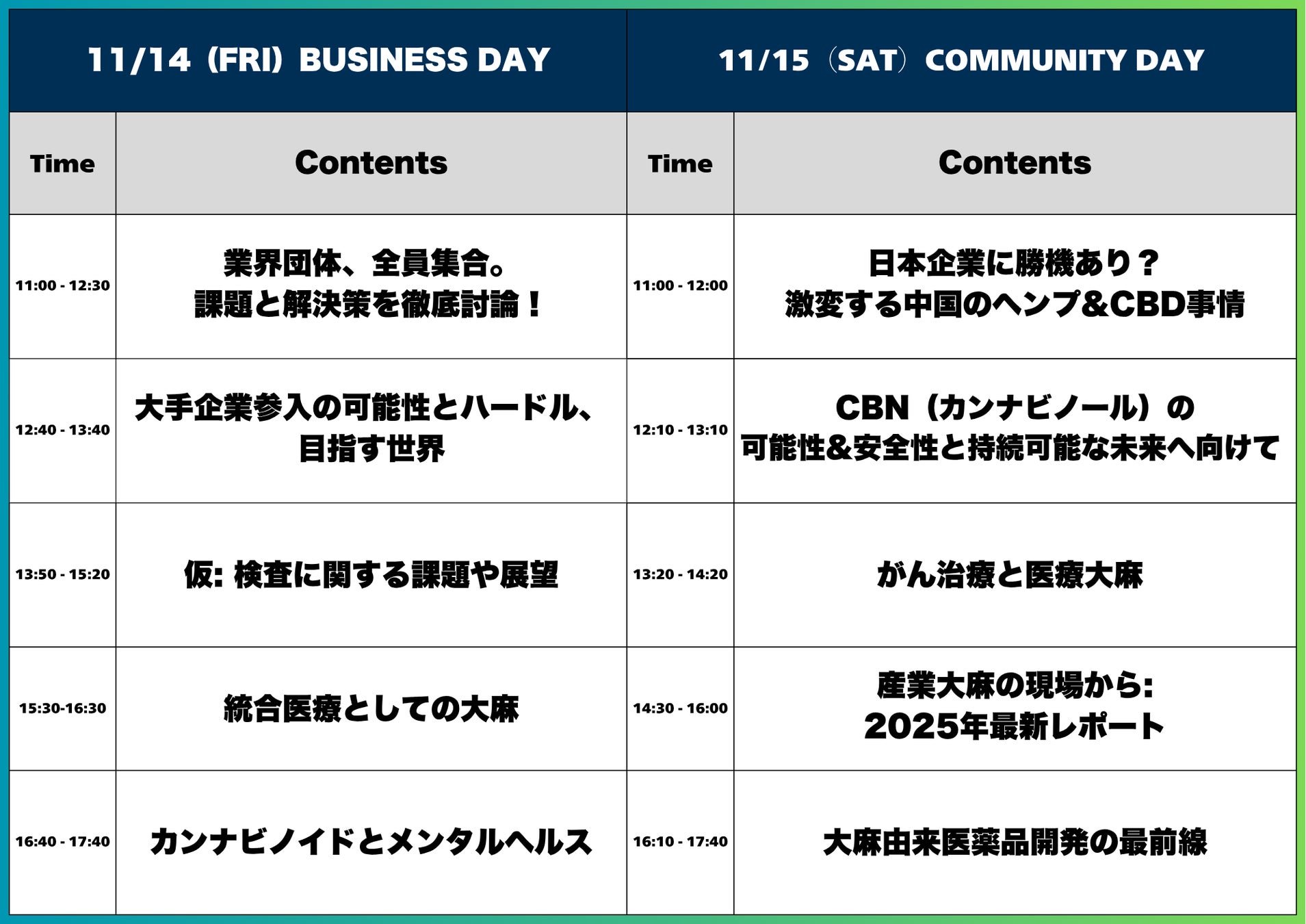 本イベントは、2021年から開催し、累計7,000名以上の来場者、累計300社以上の出展・協賛企業の参画、テレビ東京WBS(ワールドビジネスサテライト)をはじめとする各種メディアから注目をいただいてきた展示会「CBDジャーニー」と、医療・産業大麻を専門としたカンファレンス「CannaCon(カナコン)」を統合・発展させたものです。これまでの実績を基盤に、業界の未来を創造する国際的な博覧会を目指します。
