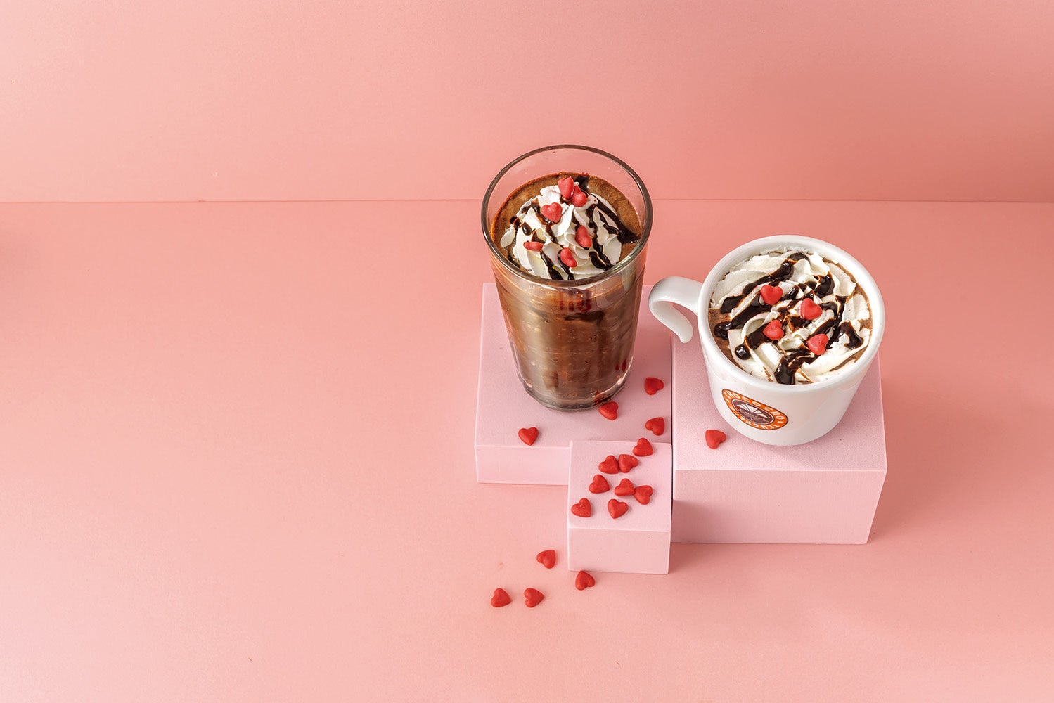 - 可愛らしい見た目とのギャップにときめく、ビターな大人の味わい「ハートトッピングショコラスムージー」/濃厚なチョコレートとミルクのコクを味わう「ハートトッピングショコララテ」