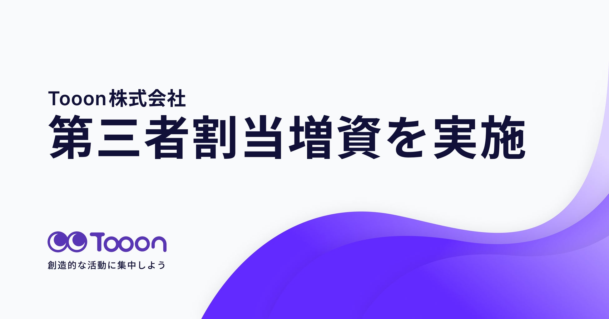 Tooon株式会社(本社:熊本県熊本市、代表取締役:杉山裕磨)は第三者割当増資を実施したことをお知らせいたします。