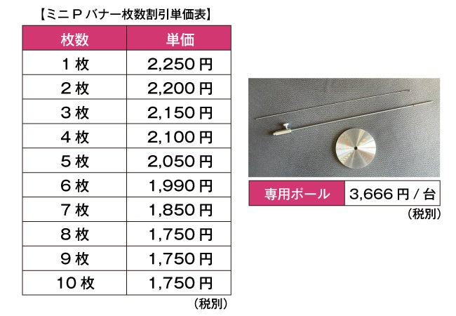 お客様の目を惹く『ミニPバナー』が形状をリニューアル!より効果的な販促を実現。