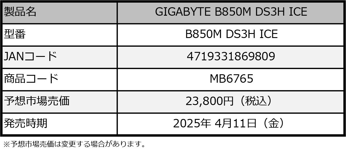 AMD B850チップセットを搭載、Micro-ATX サイズの白色マザーボード「GIGABYTE B850M DS3H ICE」を2025年4月11日(金)に発売いたします。
