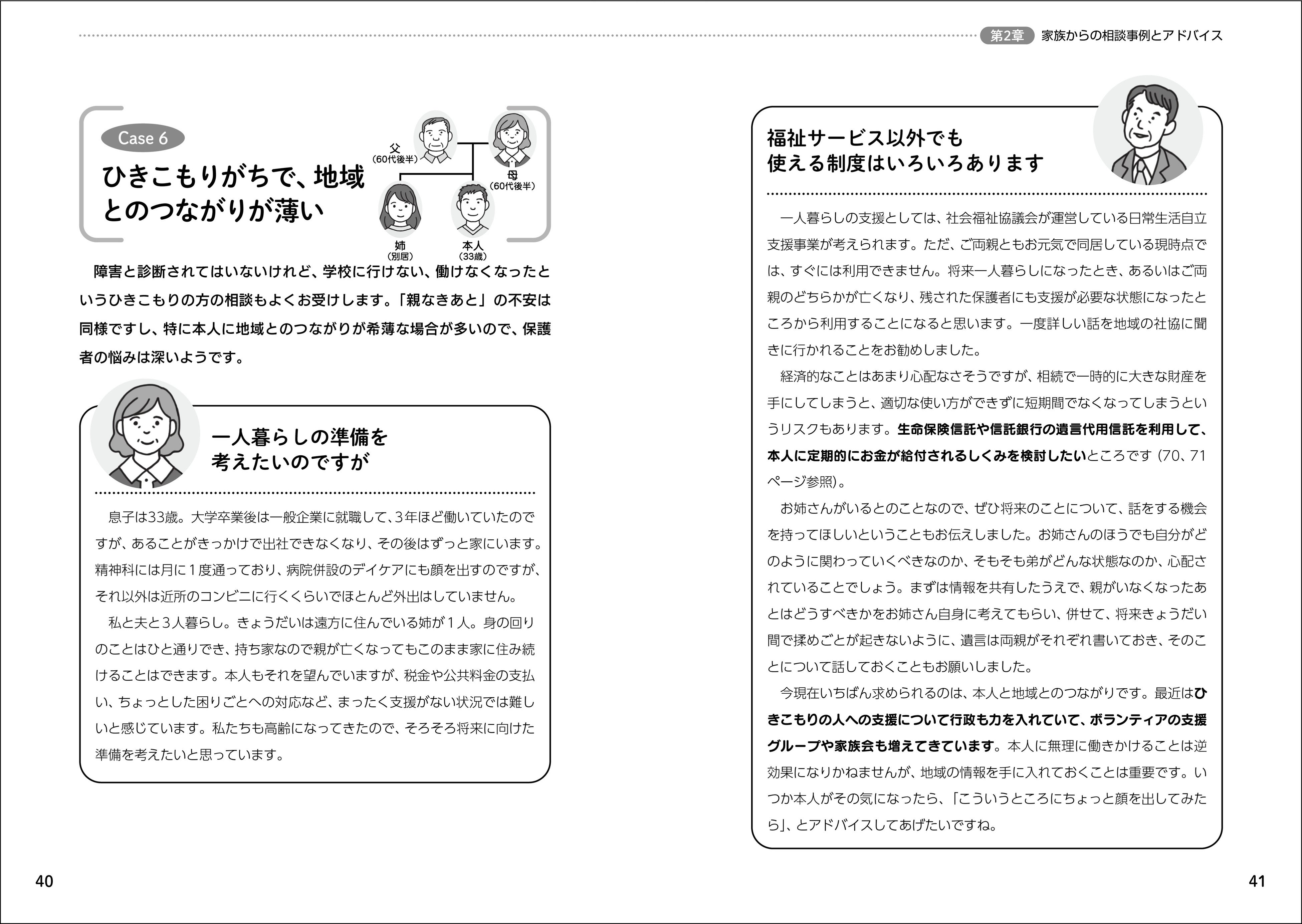 知的障害、精神障害のある人の保護者にとって、自分がいなくなったあと子どもが安心して地域で生活できるのかは、大変大きなテーマです。本人、親、きょうだいの心情を踏まえ、それぞれのライフステージで支援者が何をすべきかを一緒に考えましょう。