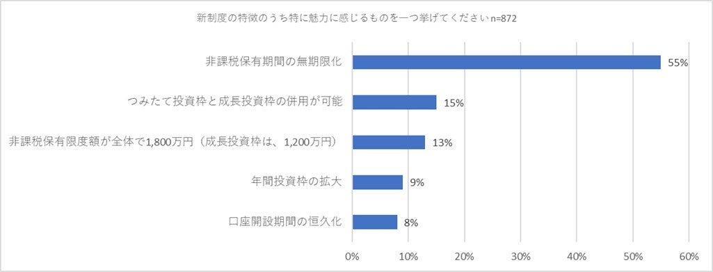 新制度の魅力は「非課税保有期間の無期限化」と過半数が回答