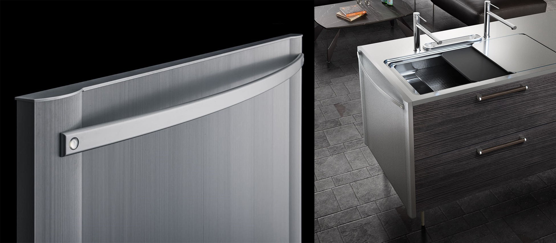 ステンレスは熱や水、汚れ、衝撃に強く、まさにキッチンに最適な素材。トーヨーキッチンスタイルは機械化できない職人による熟練の技術で、すべてのキッチンをハンドメイドで仕上げています。ポルトのステンレスワークトップは、「チタン仕上げ」と「エンブレムアイストップ」の2種から選べます。