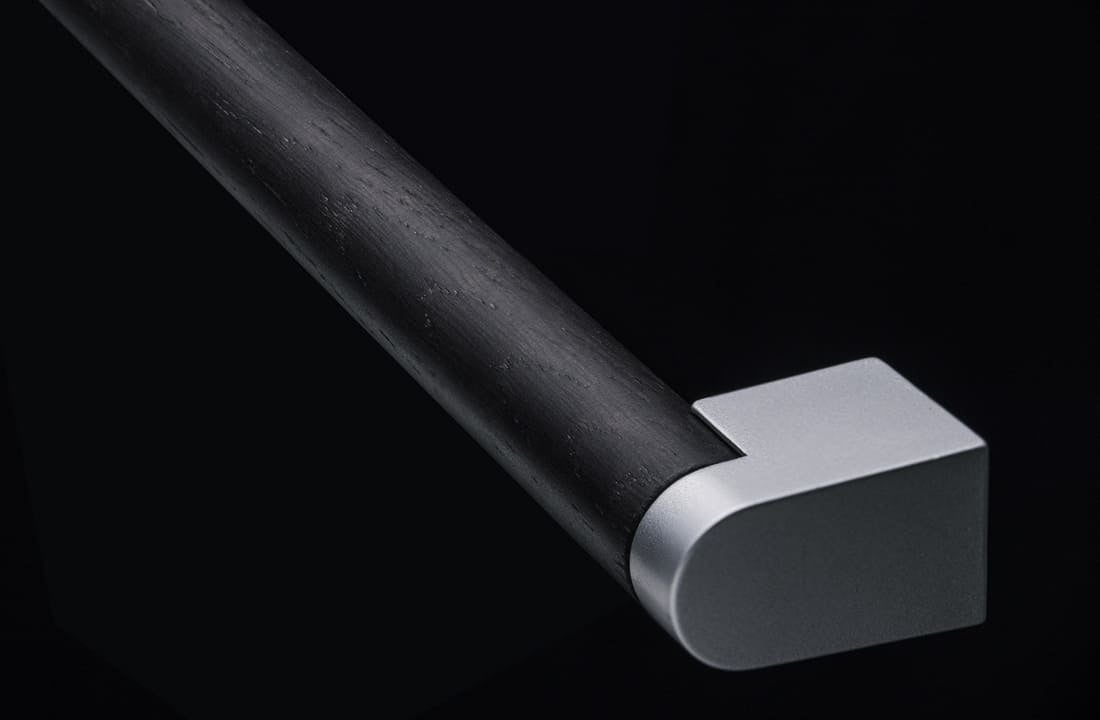 直径20mmの無垢材を使用した木材のハンドルです。 黒に近いダークカラーの天然木ヴェンゲは、サーフェイスホワイトのホワイト系の扉と合わせるとコントラストが効いてスタイリッシュ、スパークルシャドウやブラックオークグレインとはダークな同系色のため、リッチで重厚な印象を与えます。