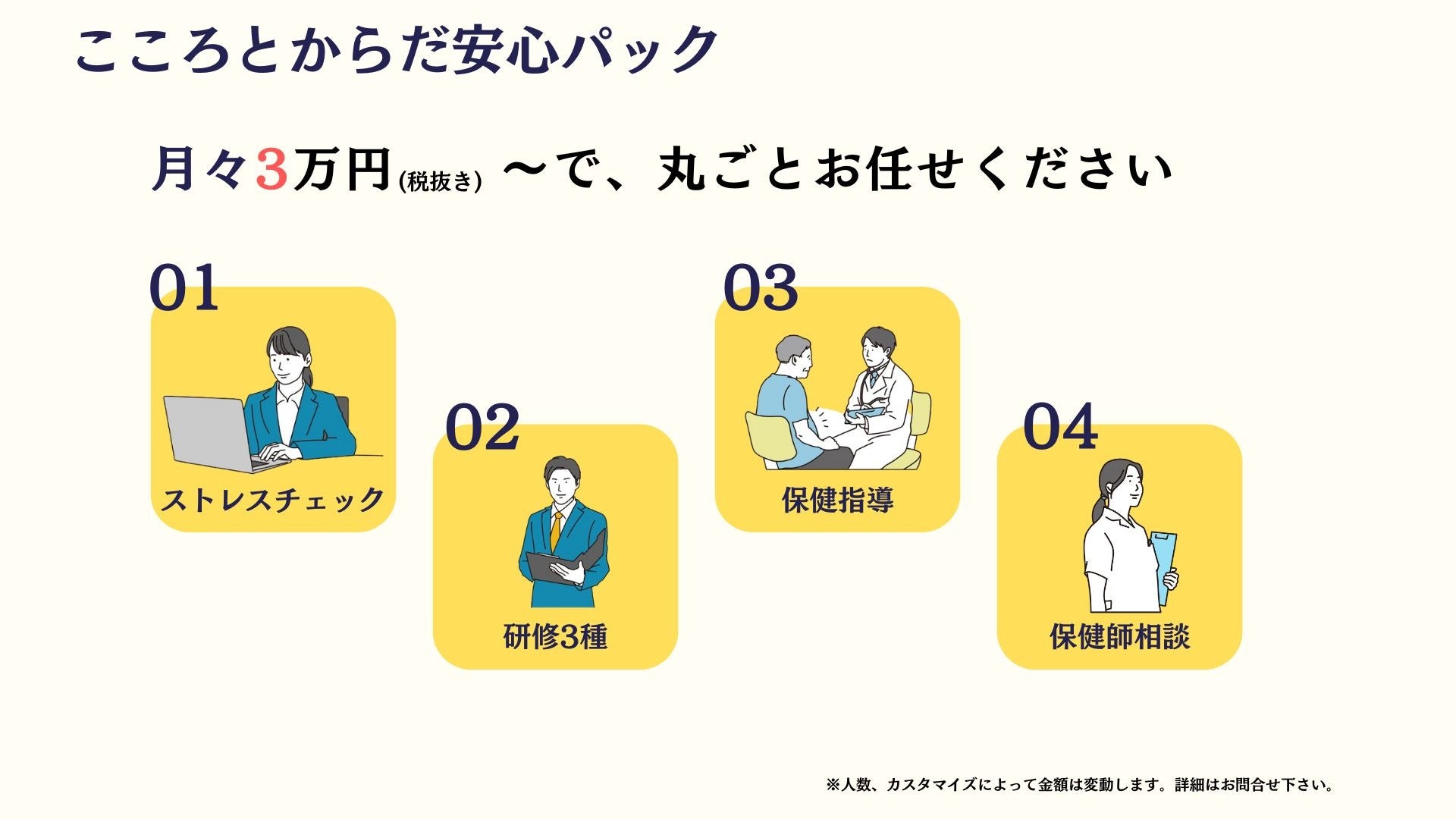【従業員50名以下の企業向け】こころとからだ安心パック ~年間を通して従業員の健康管理をトータルサポート~