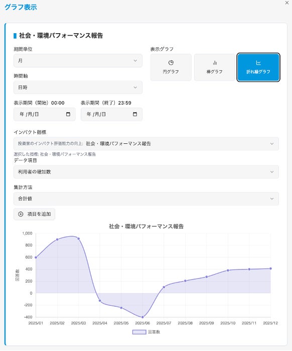インパクトデータの集計、分析、管理、グラフ表⽰が可能です |