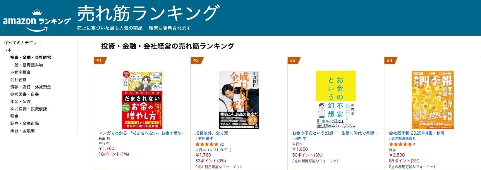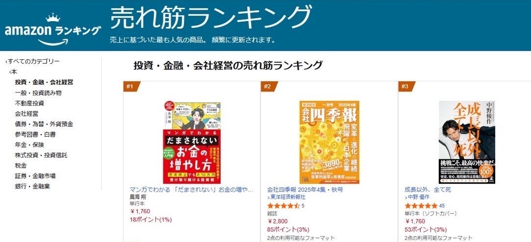 Amazon「本>投資・金融・会社経営」ランキング第1位(9月23日時点)