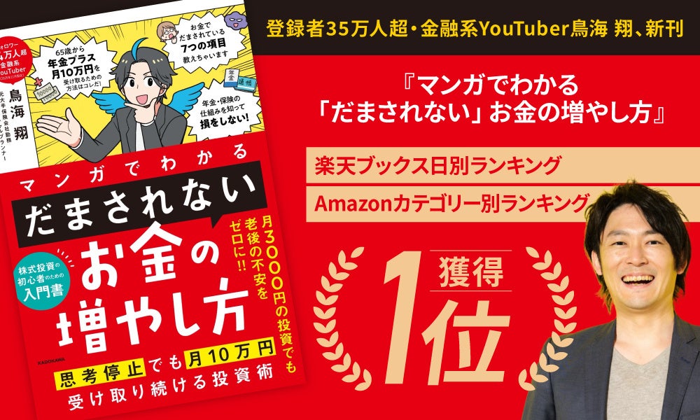 鳥海翔、新刊『マンガでわかる「だまされない」お金の増やし方』、楽天ブックス日別ランキング&Amazonカテゴリー別1位のお知らせ