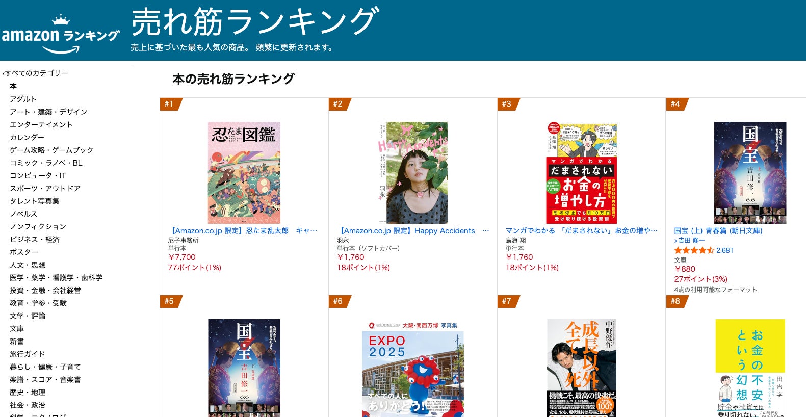 Amazon「すべてのカテゴリー>本」ランキング第3位(9月22日時点)