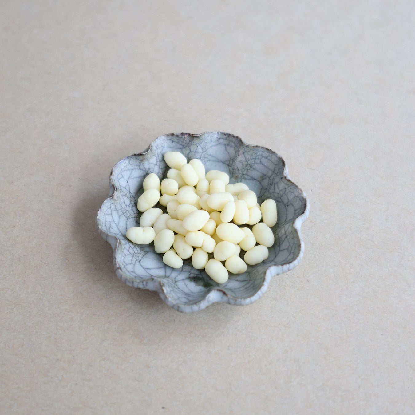 国産うるち米使用。1粒ずつがちゃんとお米に見えるように、少量ずつをホワイトチョコレートでコーティングながらライスパフをおつくりしました。