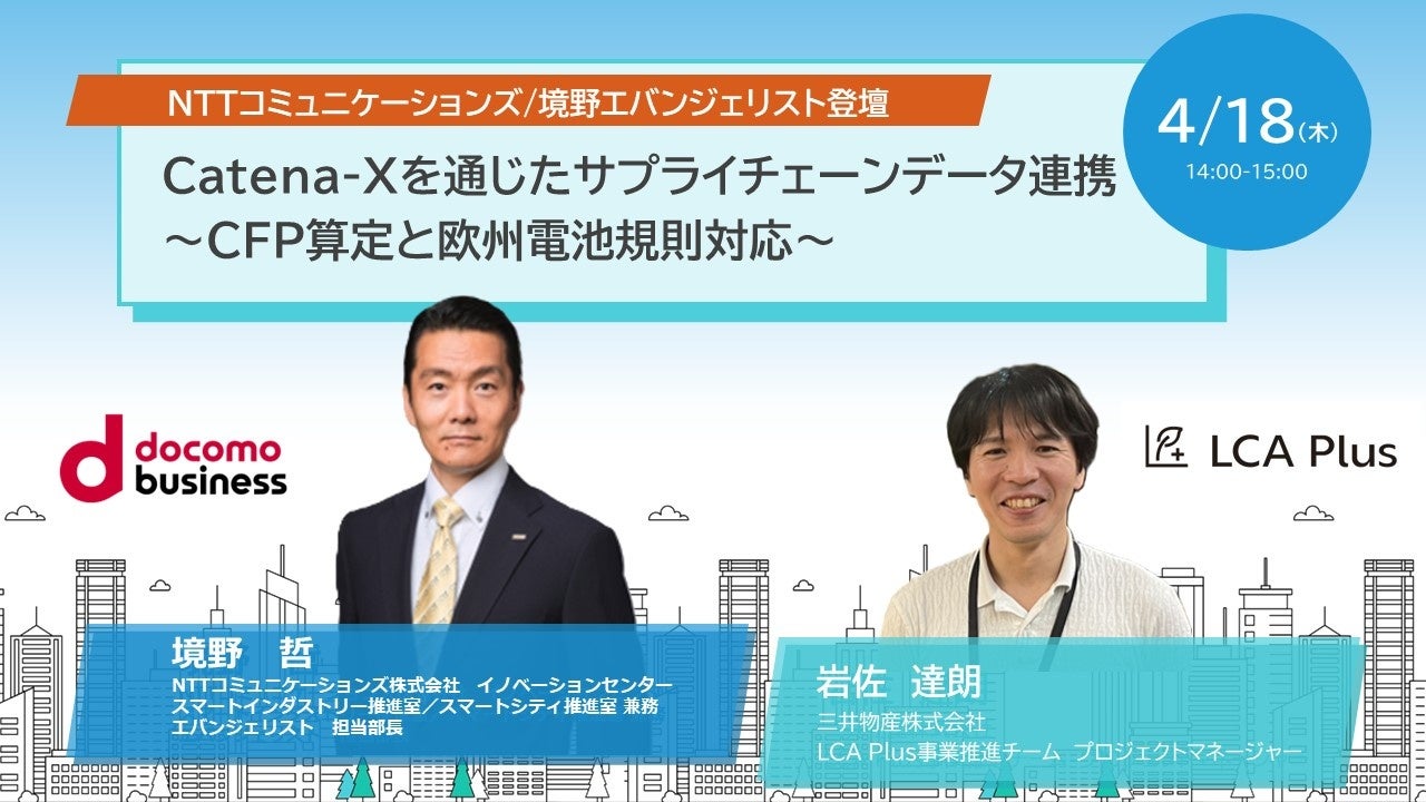 【無料ウェビナー開催】NTTコム/エバンジェリスト登壇!Catena-Xを通じたサプライチェーンデータ連携~CFP算定と欧州電池規則対応~