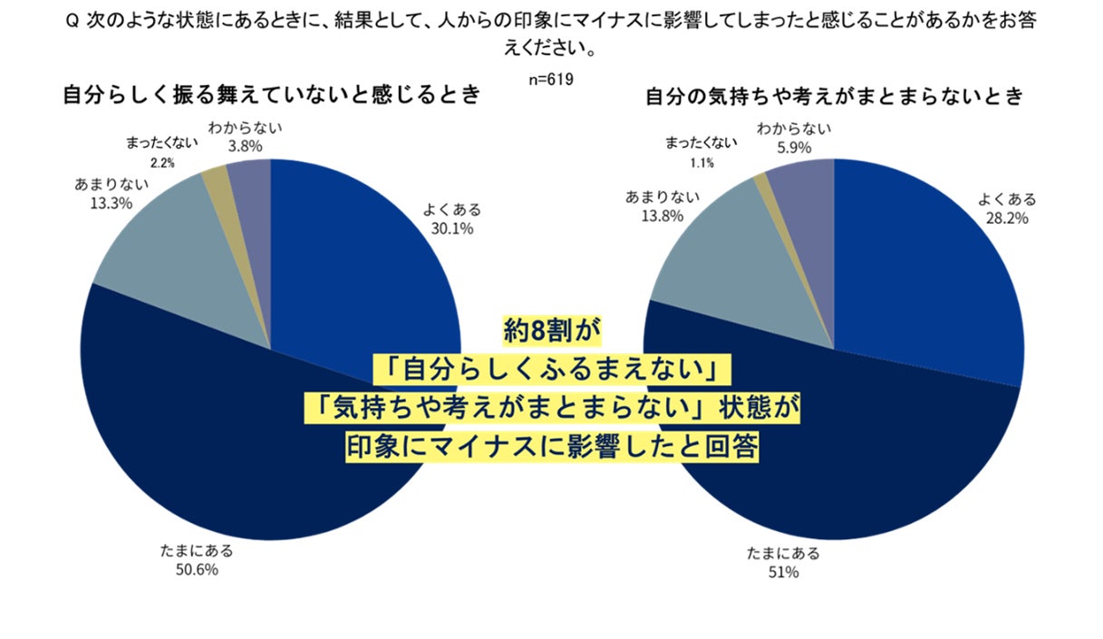 約8割が「自分らしくふるまえない」「気持ちや考えがまとまらない」状態が印象にマイナ スに影響したと回答