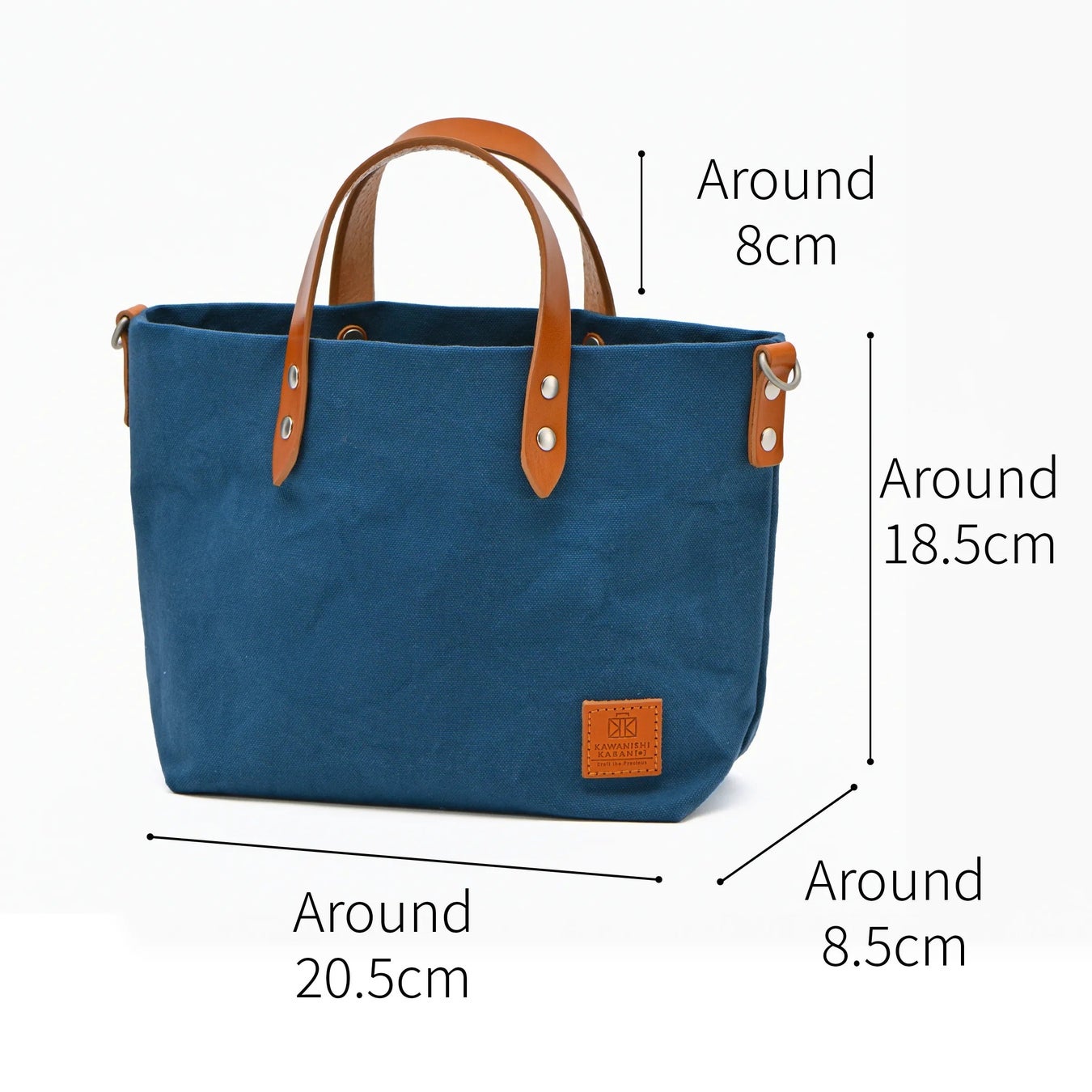 カワニシカバンの定番、大容量トートバッグabb[アベベ]よりもコンパクトなminimon[ミニモン]は、スマホや財布など必要最低限の持ち物がすっきり収まるミニマルなサイズ。