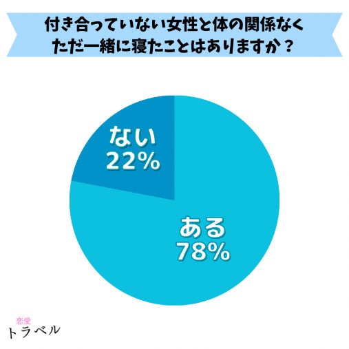 調査した結果、付き合っていない女性と体の関係なく一緒に寝たことが「ある」と回答した男性はなんと78%もいることがわかりました。