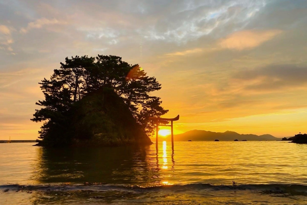 大島の中には"神守る島”ならではの神社やパワースポットがいっぱい。MINAWAのテラスからも天気の良い日は世界遺産の"沖ノ島"が見えます。 自然豊かな離島大島、みなさまから感嘆のお声を頂くMINAWAからの素晴らしい眺望をご堪能頂けます。周囲に「何もない」からこそ、現代人の私達が求める「何か」のある場所です。世界遺産の“神宿る島”沖ノ島を臨む、紺碧に輝くプライベートオーシャンビュー。MINAWAはその絶景と、神秘の島「大島」を存分に満喫いただくための貸別荘。窓の外に広がる海と空、そしてゆったりと流れる島時間。ときには都会の喧騒を離れ、沈む夕日や波の音に心を動かされる…。そんな非日常の体験と、島ならではのどこか懐かしい感覚を提供しています。