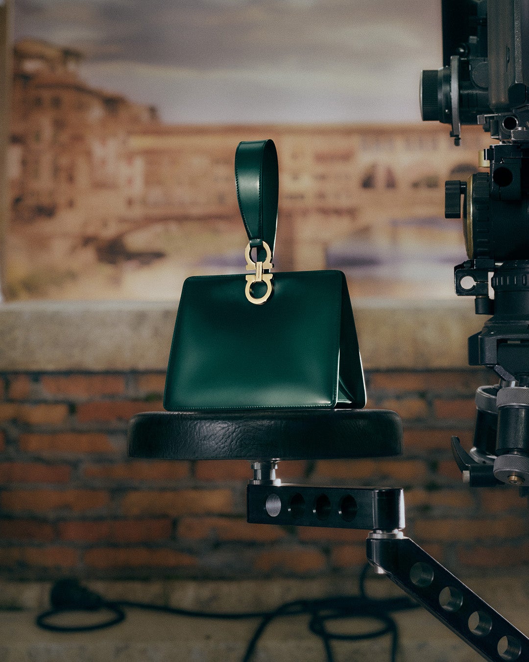 秋の気配が近づくにつれて、アンジェリーナ・ケンドールは、鏡の技法によって生み出された、もう一人の幻のような自分とともに、トスカーナの穏やかな風景の中を自転車でゆっくりと進んでいく。足元にはヴァラ・バックルがあしらわれたハイヒールローファー、そして手には、しなやかなレザーにガンチーニピアスを配し、エレガントなプリーツが生まれる新しいソフトバッグが大切に抱えられている。