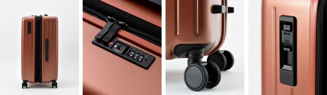 揺れる車内や坂道での不意な走行を防ぐストッパーや、諸外国の旅で施錠したまま航空会社に預けることができる