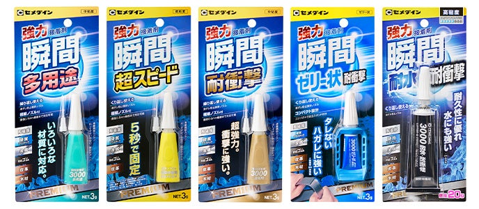 セメダインブースでは、瞬間接着剤が苦手とする水や衝撃に強い「3000耐水・耐衝撃」をメインに、特殊容器でノズルや容器内で液が硬化しにくく、繰り返し使用できる瞬間接着剤「3000シリーズ」をご紹介するほか、クリアパーツを白化させることなくキレイに接着し、メッキパーツにも使用可能で、塗装もおかさない水性接着剤「ハイグレード模型用」や、フィギュアの固定や仮組みに便利な〝貼って剥がせる〟弾性粘着剤「BBX」、接着が難しい素材であるポリエチレン・ポリプロピレンを強力に瞬間接着でき、ポリキャップの接着にも最適な「PPX」など、様々な使用シーンに最適な接着剤をご提案いたします。