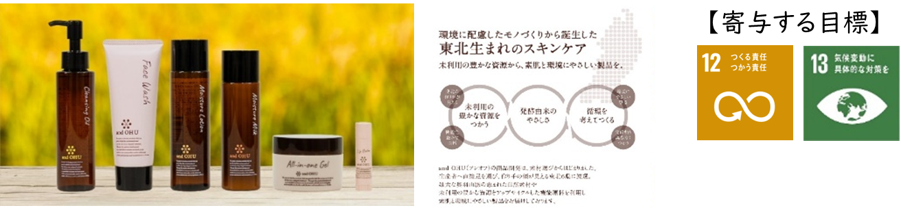 東北の自然素材や副産物などの未利用資源をアップサイクルした、素肌と環境にやさしいスキンケアシリーズ。