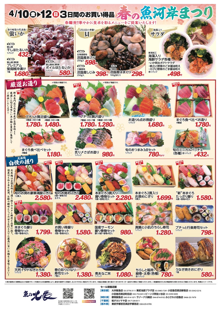 魚の北辰、全店共通「春の魚河岸祭り」を開催!魚の魅力を五感で楽しむ水族館のような演出の「お魚水族館®️」も4月11日に開催!対面売場の魚介類は当日限り全品10%引き