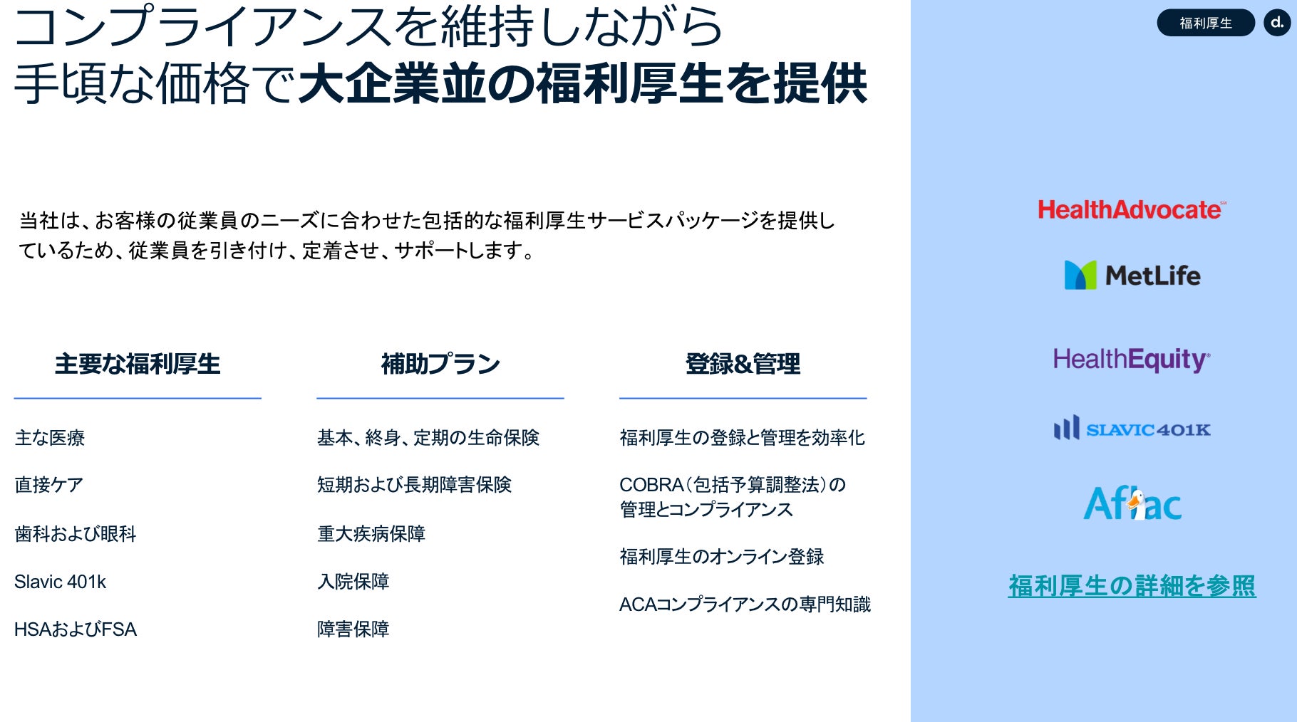 現在世界各国の企業が米国でPEOサービスを使い魅力的な福利厚生、保険を従業員に提供し満足度を向上させ人事労務に係るコストを大幅に下げている。