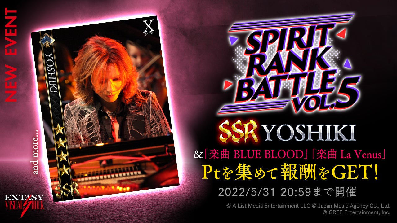 『EXTASY VISUAL SHOCK』にて、「SPIRIT RANK BATTLE vol.5」開催予定!RYUICHIの誕生日を記念したキャンペーンや「運命の出会」も開催中!