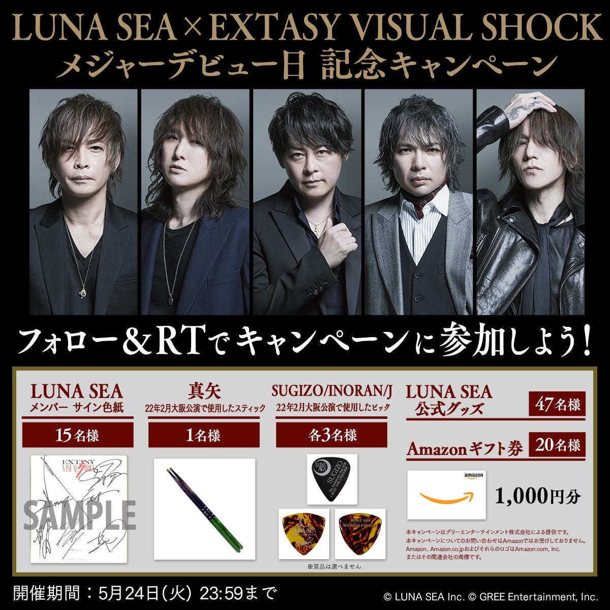 LUNA SEAは1992年5月21日、アルバム「 IMAGE 」がMCAビクター(現 ユニバーサルミュージック)よりリリースされ、メジャーデビューしました。それを記念して、EXTASY VISUAL SHOCK公式Twitterではフォロー&RTキャンペーンを実施します!