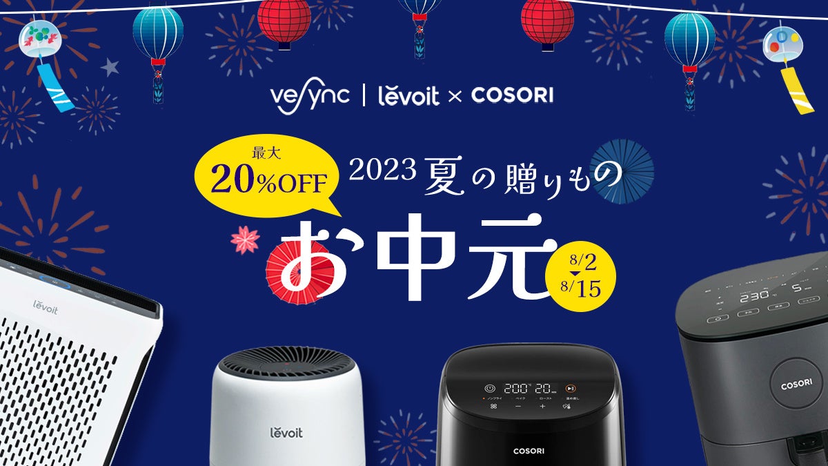 アメリカ発の小型家電メーカーのVeSync(ウィーシンク) Co., Ltd(本社:アメリカ カリフォルニア州)は、8月2日(水)よりVeSync Store サマーセールを開始いたします。Amazonでベストセラーを獲得した人気製品のCOSORIノンフライヤーやLevoit空気清浄機などを8月15日(火)までお買い得価格で販売。ぜひお中元の夏ギフトとして、簡単・ヘルシーな健康生活を実現できるCOSORIと室内でも清々しい空気を感じる事ができるLevoitシリーズはいかがでしょうか。