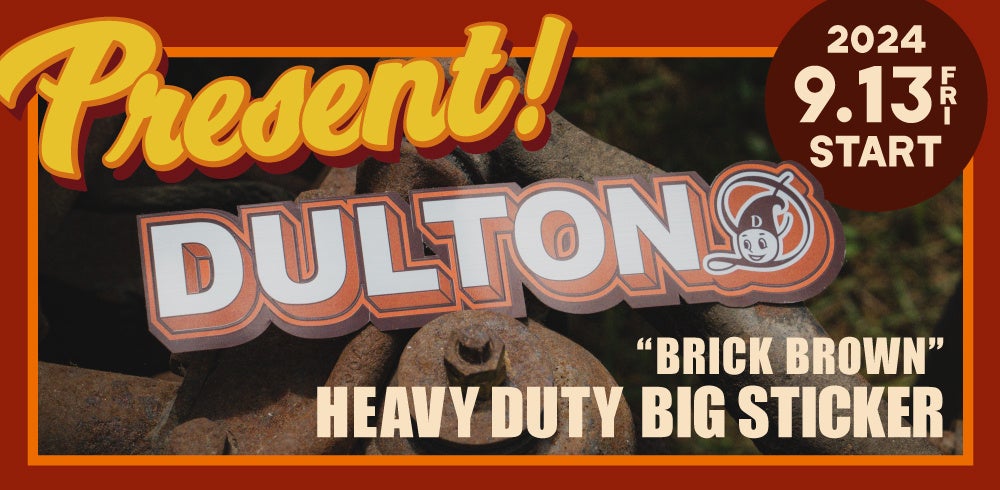 イベント開催中、DULTON SHOPにて¥3,000(税込)以上お買い上げのDULTON会員様に“BRICK BROWN” HEAVY DUTY BIG STICKER をプレゼントいたします。