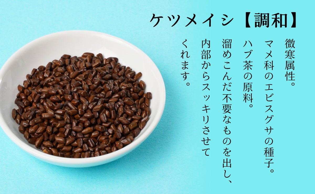 「浄湿茶」は、【ハトムギ・みかんの皮、サンザシ、ケツメイシ、とうもろこしのひげ】の5つの和漢素材を配合しています。