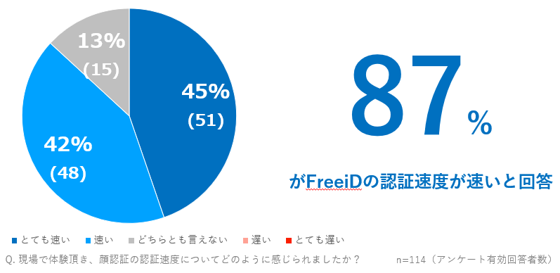 - 来場者の87%が、FreeiDの認証速度は、「速い」と回答