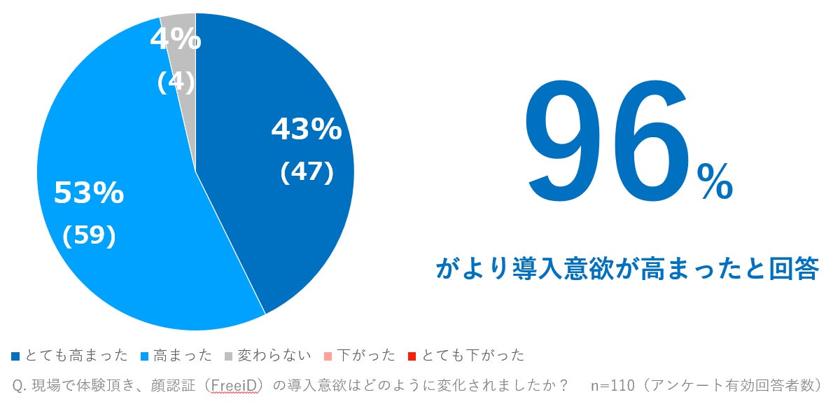 - 来場者の96%が、顔認証(FreeiD)の導入意欲が、体験後に「より高まった」と回答