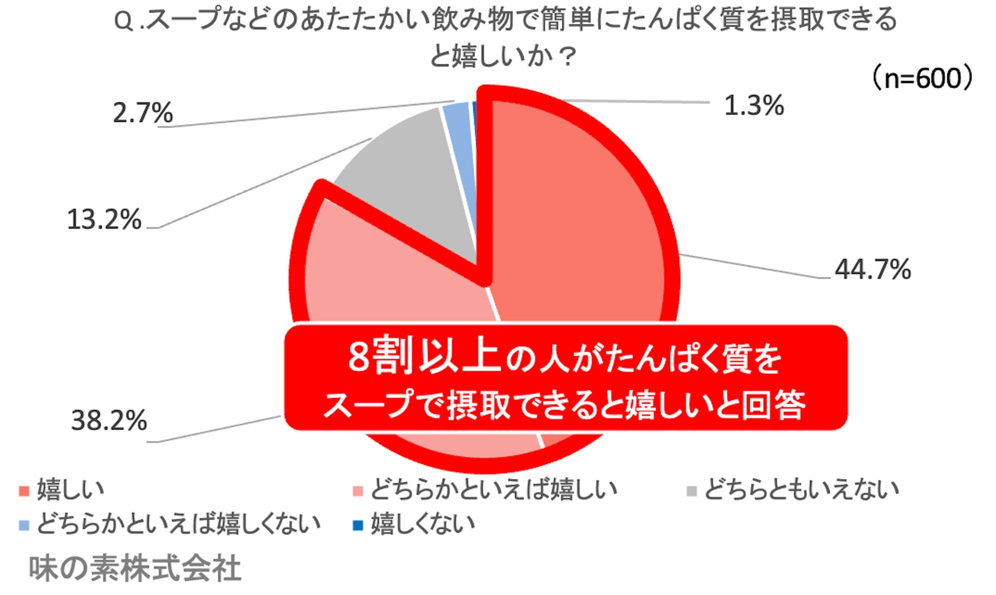 ■8割以上が「スープなどのあたたかい飲み物でたんぱく質を摂取できると嬉しい」と回答。