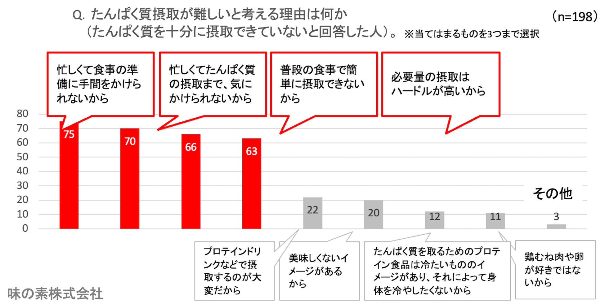 Q.たんぱく質を日常的に十分な量摂取することが難しいと考える理由は何か