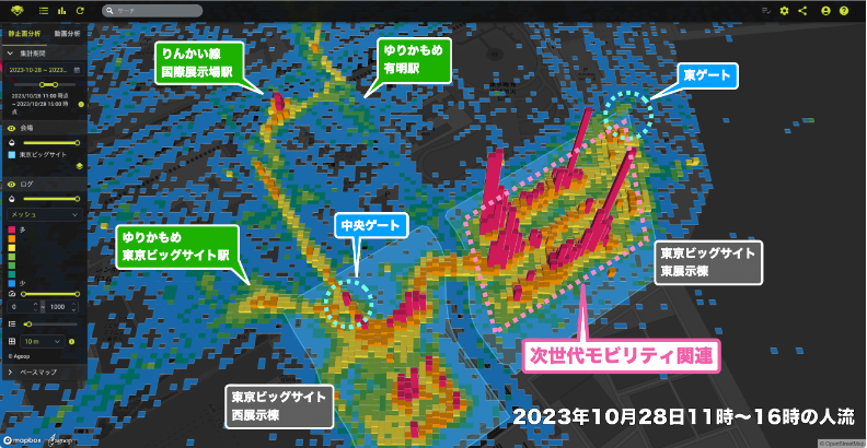 来場者の6割以上が興味を示した次世代モビリティエリアでは、人流解析からも人気であることが明らかに