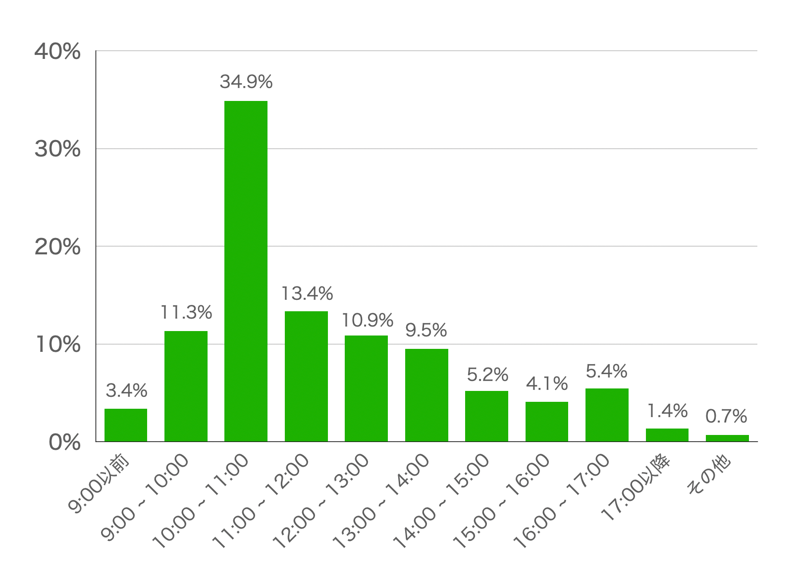入場のピークは午前10~11時で、この時間帯に約35%の来場者が集中しました。朝の早い時間帯は来場者の動きが活発で、特に午前11時までには来場者の半数以上が入場していることが確認されました。このデータは、イベント運営上の計画や来場者の流れを考慮する際に有益です。