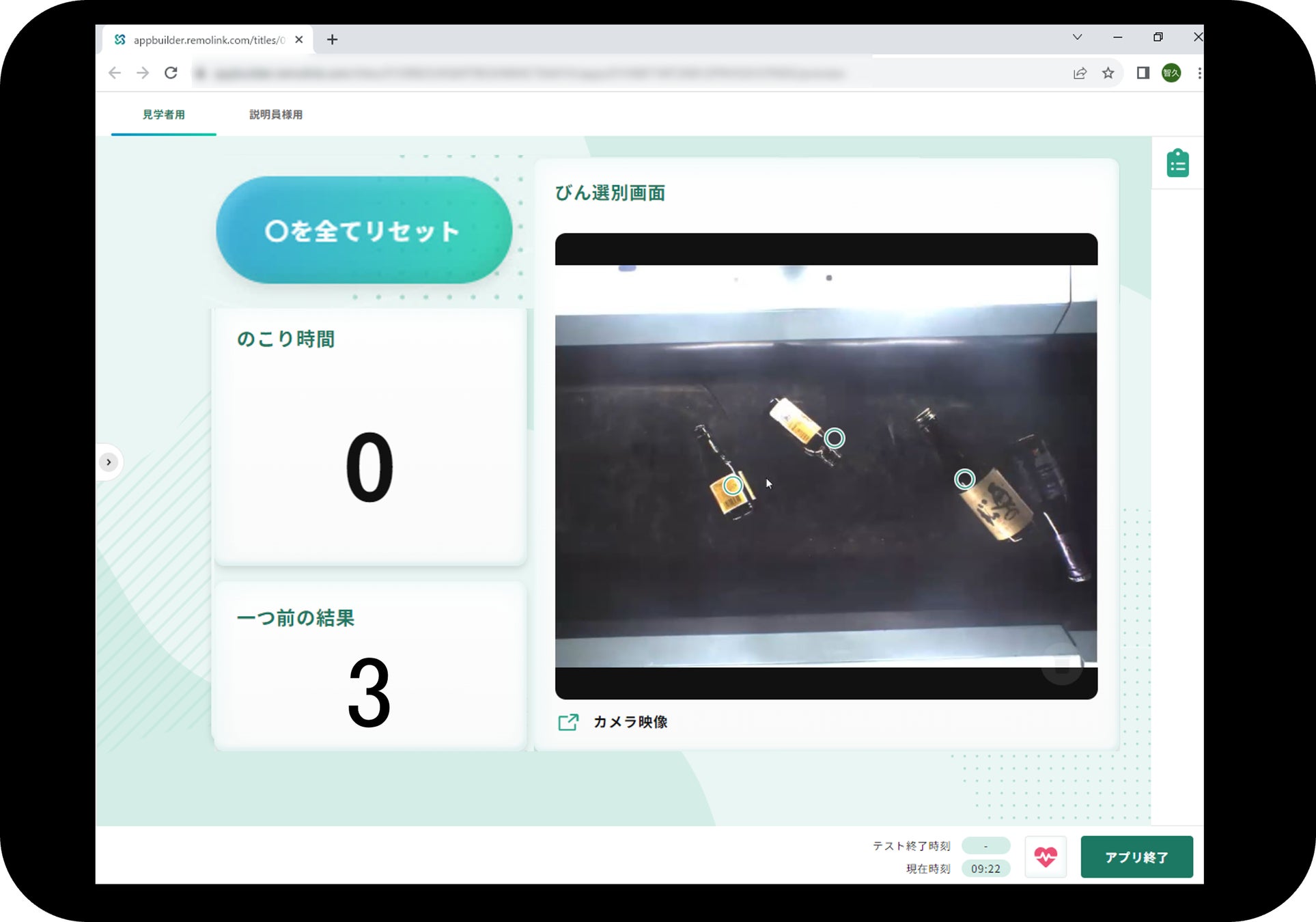 見学に訪れた人がびんの選別ロボットシステム「K-Repros®」を遠隔操作することで環境啓発を促す