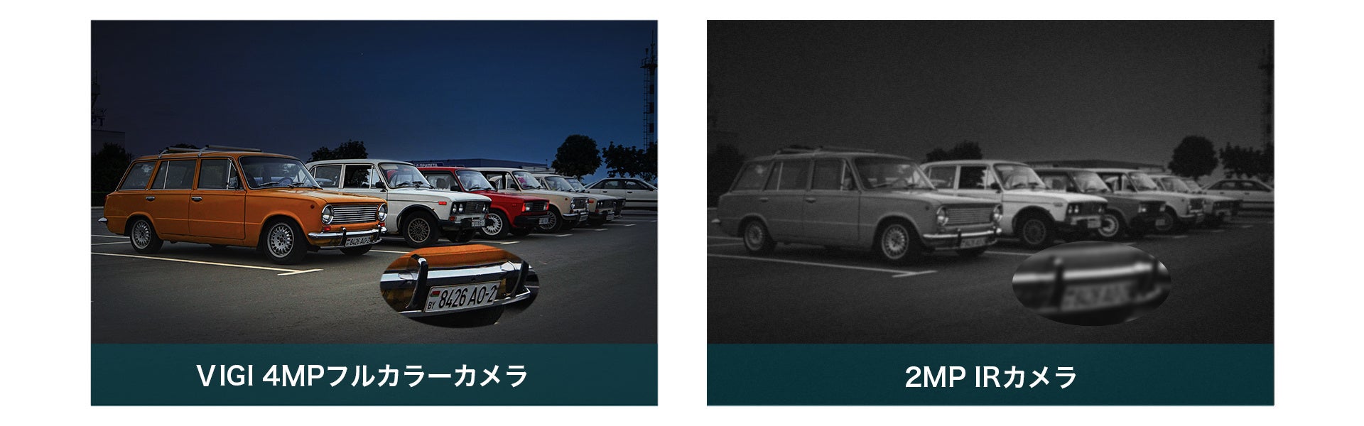 細部まで撮影できる4メガピクセルに対応。さらに、感度センサーと内蔵のスポットライトLEDにより、真っ暗な環境でも24時間フルカラーで監視し、被写体をいつでも鮮明に細部まで映し出します。