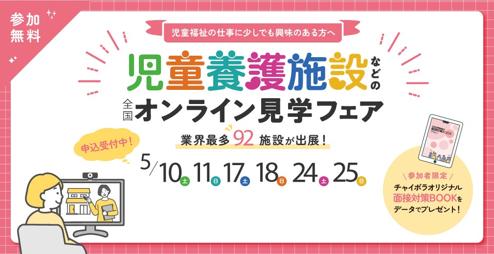 こうした状況であるため、そもそも求職者に気づいてもらえない、気づいてもらえたとしても働く環境や職場の魅力が伝わるほどの情報がない、結果的に求職者の意向を高められない、という状態から抜け出せないのが業界としての課題です。チャイボラは、この課題を解決し、社会的養護施設における人材不足解消を実現させるため、今年度も「児童養護施設などのオンライン見学フェア」を実施いたします。